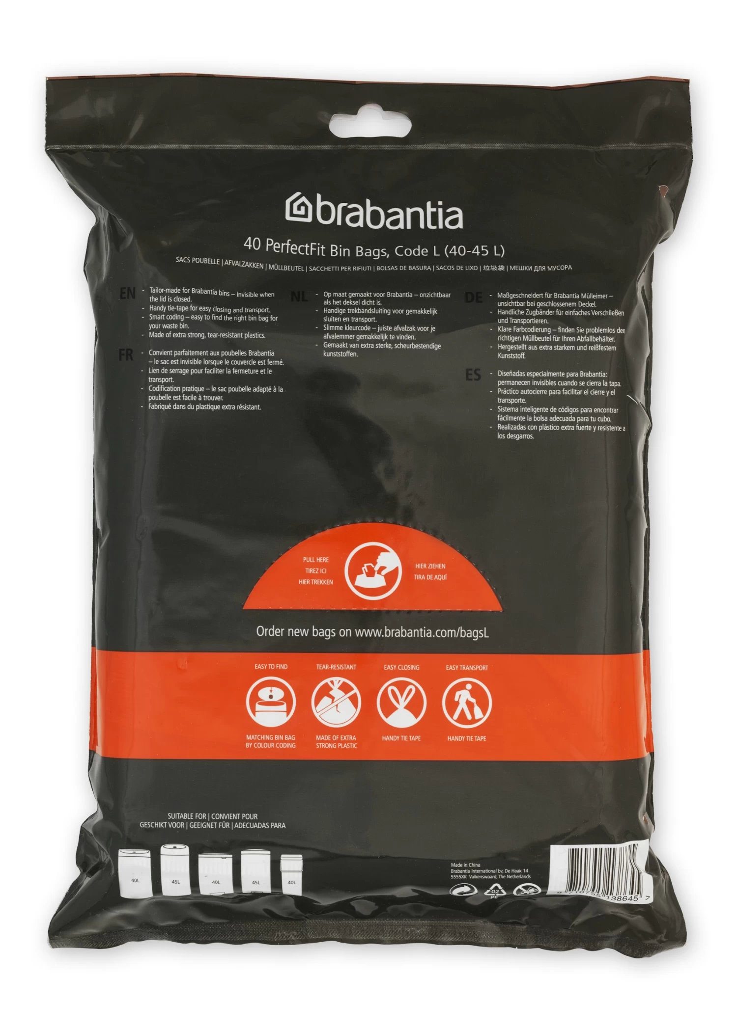Voorraadje – 40 vuilniszakken die perfect passen in je 40 – 45 liter Brabantia afvalemmer (code L).