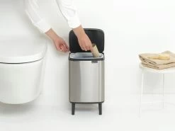 Niet te groot, niet te klein, maar precies goed. Dat is de Brabantia Bo Hi afvalemmer 7 liter voor jou! Deze ruimtebesparende afvalbak past perfect in elke hoek. Plaats hem waar je maar wilt, want je kunt het deksel eenvoudig optillen vanaf de linker-, rechter- of voorkant van de bak. Je hoeft dus niet meer met je arm te draaien om er iets in te doen. Ga Bo!Voordelen & Kenmerken