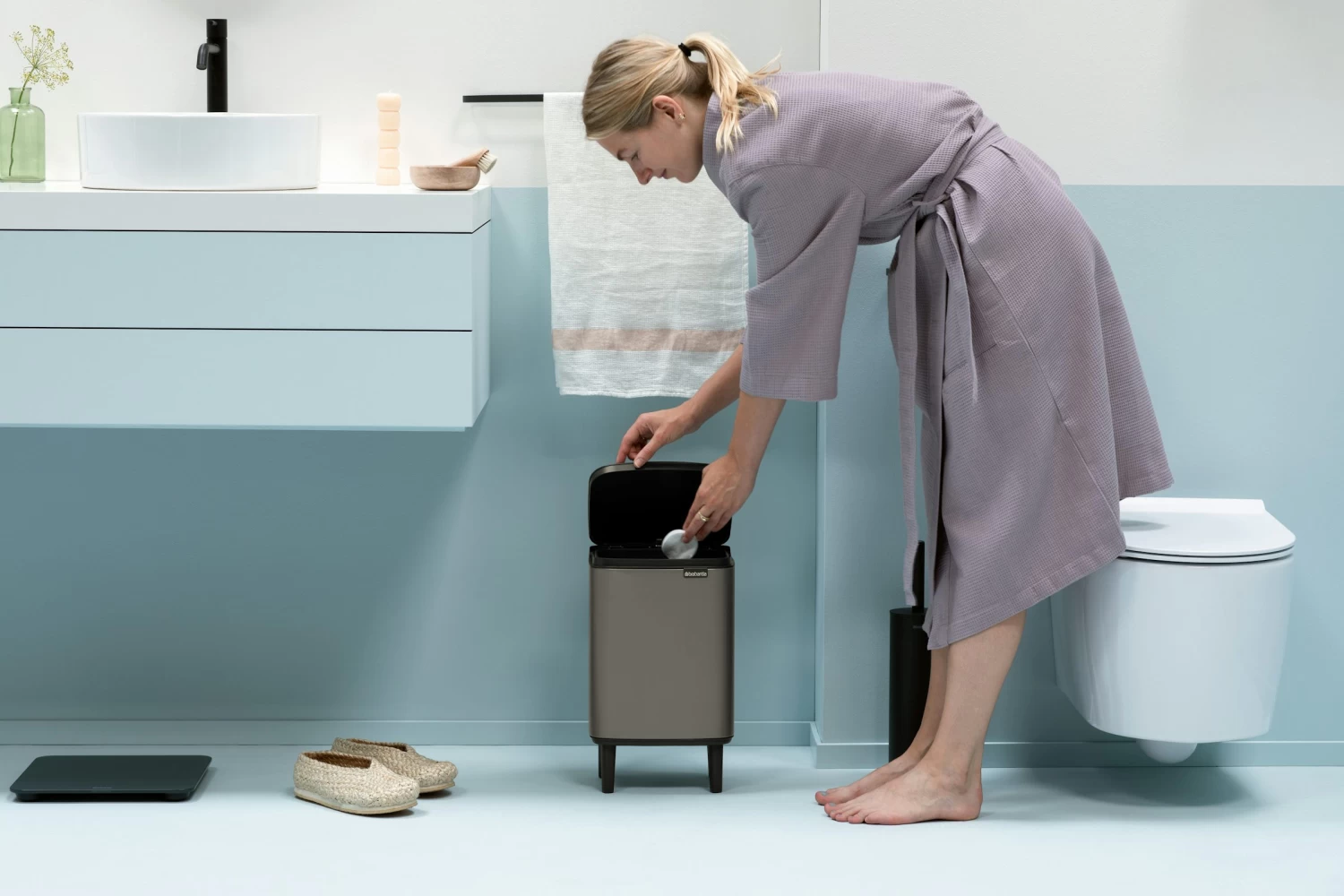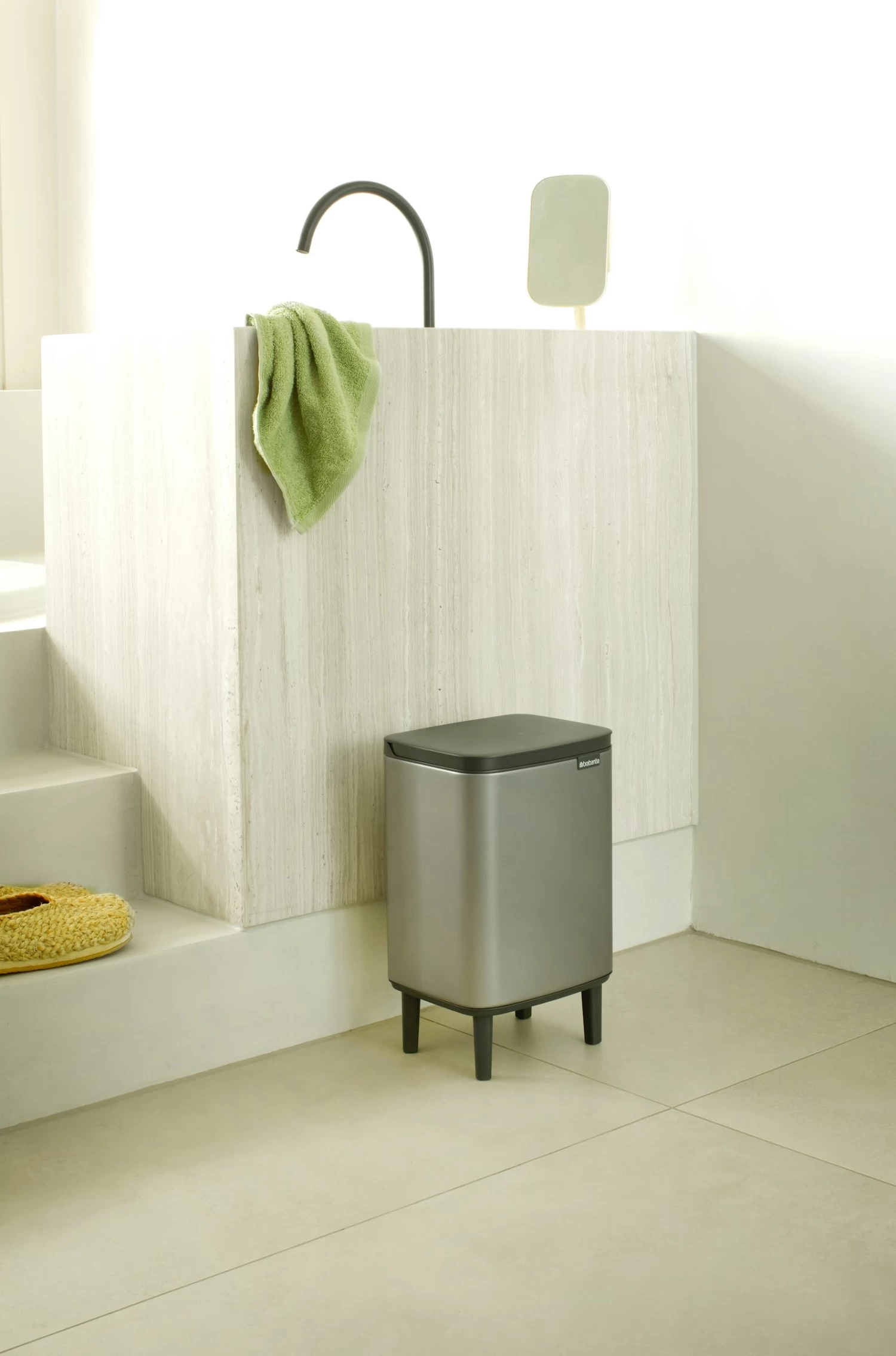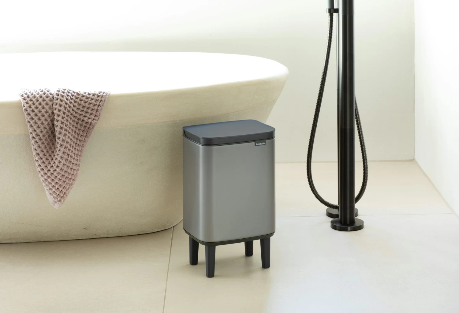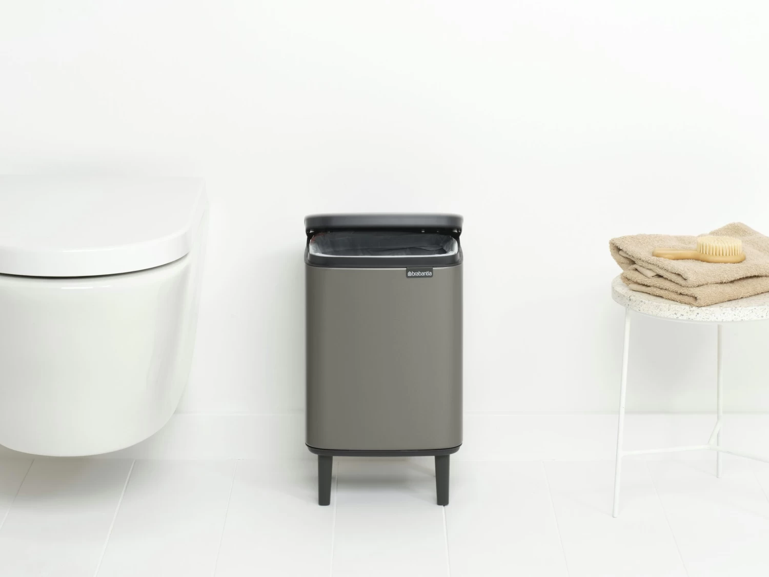 Niet te groot, niet te klein, maar precies goed. Dat is de Brabantia Bo Hi afvalemmer 7 liter voor jou! Deze ruimtebesparende afvalbak past perfect in elke hoek. Plaats hem waar je maar wilt, want je kunt het deksel eenvoudig optillen vanaf de linker-, rechter- of voorkant van de bak. Je hoeft dus niet meer met je arm te draaien om er iets in te doen. Ga Bo!Voordelen & Kenmerken
