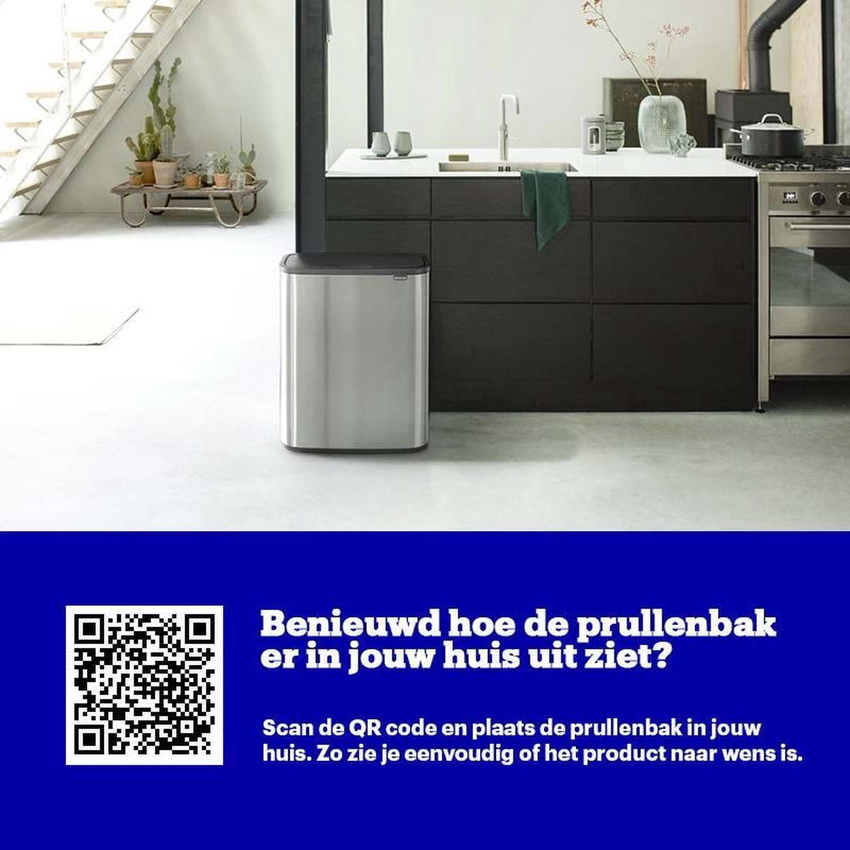 De Brabantia Bo Touch Bin bevat twee binnenemmers van maar liefst 30 liter. Hierdoor biedt deze prullenbak voldoende ruimte voor afval van een groot gezin. Deze Brabantia prullenbak wordt geleverd inclusief een proefverpakking van afvalzakken.
