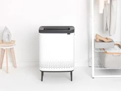 Brabantia maakt van wasdag een prachtige dag met de 2×45 liter bo wasbox Hi. De bo wasmand lijkt op een kastje, en is daardoor een super decoratiestuk in je slaap- of badkamer. Maar Bo is meer dan looks alleen! De wasmand heeft de perfecte hoogte en slimme ventilatiegaten. Dankzij de Quick-Drop opening hoef je zelfs het deksel er niet af te halen om er was in te gooien en kun je flink wat wasgoed in een keer kwijt. Op wasdagen haal je het deksel eraf om de perfect passende katoenen waszak(ken) simpel te verwijderen en de was met hetzelfde gemak naar je wasmachine te brengen. Wassen met klasse!