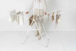 Bespaar tijd en energie door je was natuurlijk te drogen – en bespaar plaats door het met dit slimme rek te doen! Dankzij de slimme stang, 25 meter droogruimte en 8 haken voor kleerhangers heb je op dit Brabantia HangOn Droogrek alle ruimte. Alles droog? Klap ‘m eenvoudig in tot een klein pakketje en berg ‘m op. Laat die wasdroger dus maar hangen!