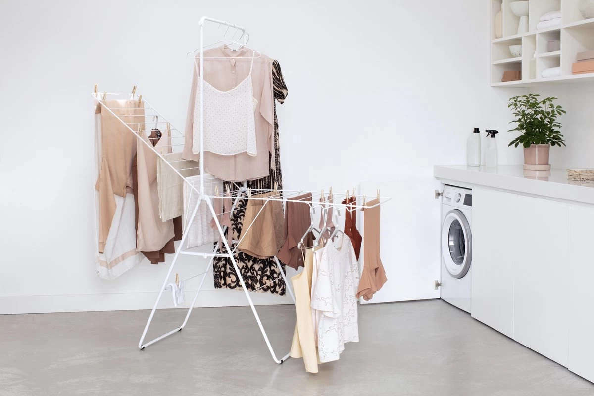 Bespaar energiekosten, vergeet je droger en hang je kleding op een droogrek uit de Brabantia HangOn serie. Stabiel, gemakkelijk in gebruik en verkrijgbaar in verschillende formaten in de kleuren Matt Black, White of Metallic Grey.