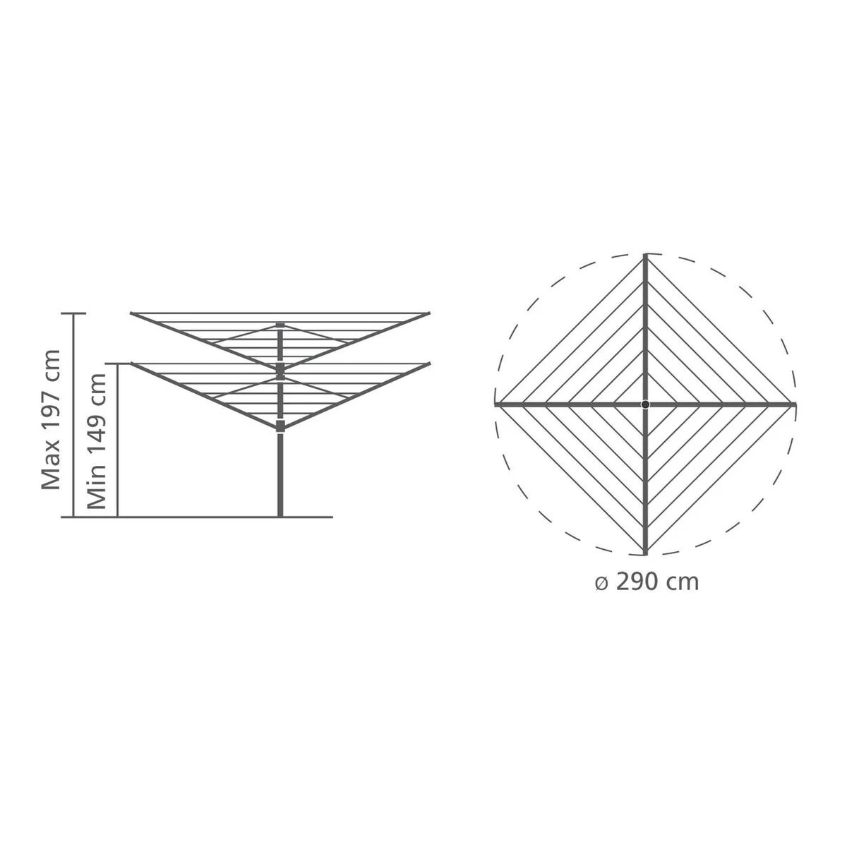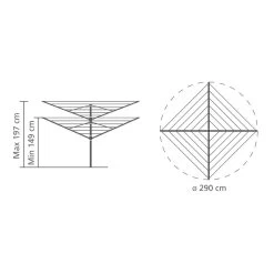 U hoeft niet rond te lopen met de wasmand- ook met veel natte was aan de lijn draaien de armen soepel. Probleemloos af te stellen op uw ideale werkhoogte. (124-182 cm)
