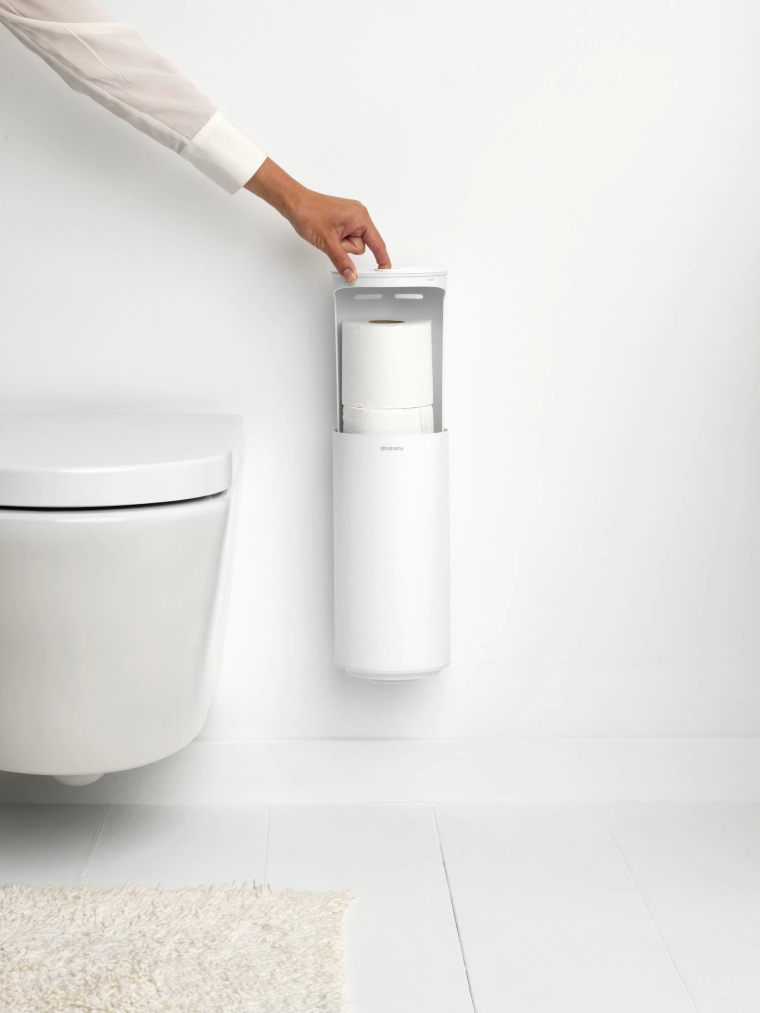Houd je stijl hoog, ook in het kleinste kamertje van je huis, met deze minimalistische Brabantia MindSet reserverolhouder. Houdt met plezier twee reserve toiletrollen voor je vast. De dichte behuizing beschermt de rollen tegen stof en spetters, heel hygiënisch en heel discreet. Tijd om van rol te wisselen? Haal er een omhoog met het slimme liftsysteem. Stijlvol, schoon en slim.