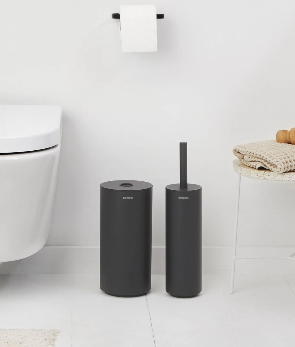 Uitgekeken op je toilet? Dit toptrio staat klaar om je kleinste kamertje een stijlvolle make-over te geven. De Brabantia MindSet toiletaccessoire set heeft om te beginnen een sterke en hygiënische toiletborstel met houder. De minimalistische WC rolhouder houdt je wc-papier altijd bij de hand en in de reserverolhouder verstop je nog eens twee rollen. Alles wat je nodig hebt voor een stijlvol toilet.