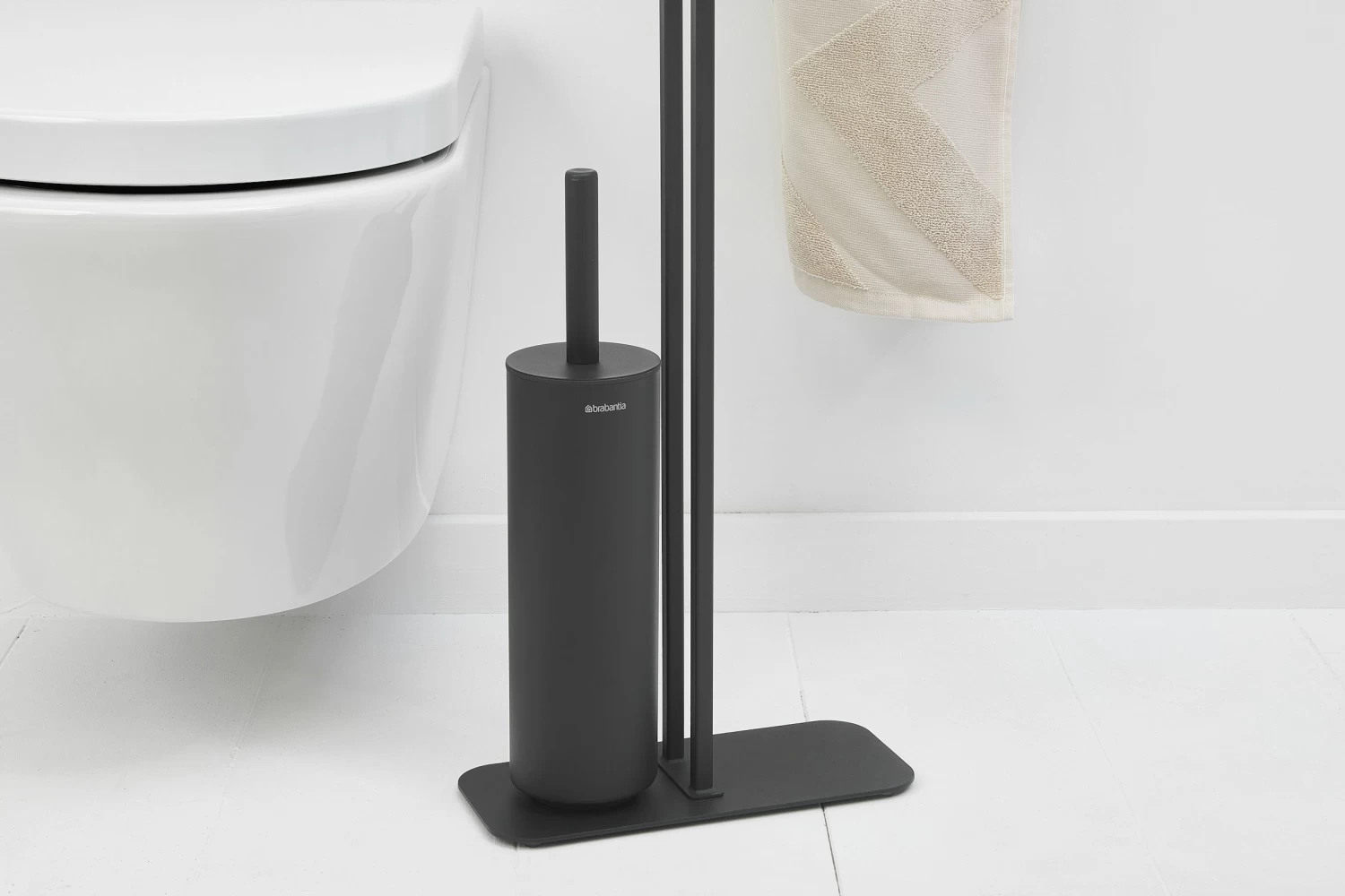 Beste maatjes – toiletborstelhouder zit vast aan de standaard.
