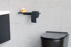 - Makkelijk – losse stang en brede opening voor alle gangbare toiletrollen. Lekker gevoel – moderne structuurlak.