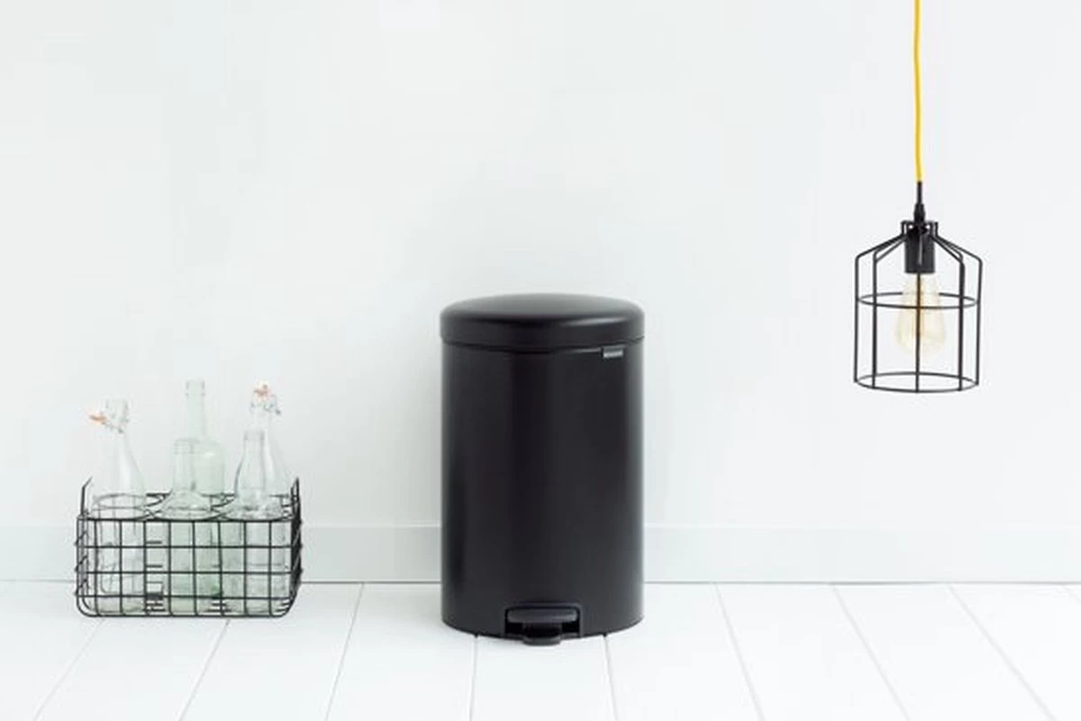 De Brabantia newIcon Prullenbak – 20 l – Matt Black met kunststof binnenemmer is ideaal voor in je keuken en huiskamer. Dankzij de grote inwerpopening kun je gemakkelijk afval weggooien zonder te morsen. Brabantia’s newIcon pedaalemmers zijn niet alleen iconische schoonheden, ze zijn ook betrouwbare hulpjes in de huishouding. Stevig en altijd stabiel, dankzij hun antislip onderkant en anti-kantel blok.