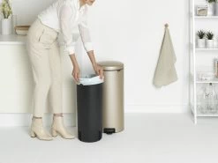 Brabantia’s 30 liter newIcon Pedaalemmer heeft een iconisch ontwerp en is ook nog eens een betrouwbaar type. Is stevig en staat stabiel door zijn antislip onderkant en anti-kantelblok. Dankzij de unieke soft-close techniek sluit hij soepel. En natuurlijk is deze prullenbak hygiënisch te openen, geurdicht en makkelijk schoon te houden. Perfect voor je keuken of een andere kamer die 30 liter tijdloos design kan gebruiken.