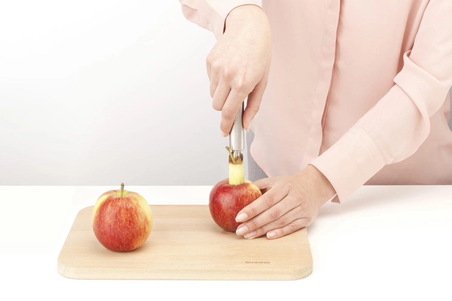Kern valt vanzelf uit de appelboor door de open vorm.