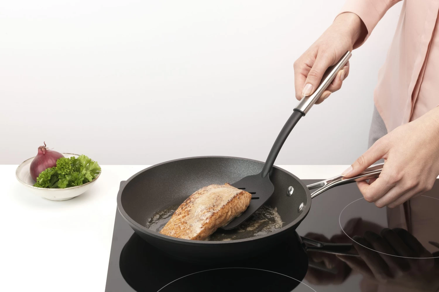 Eieren, vlees, ovenschotels… Draai ze om en serveer ze met deze Brabantia non-stick bakspaan. Deze stevige spatel heeft slimme sleuven waar vet makkelijk doorheen kan lopen. Hij is bovendien gemaakt van veerkrachtig nylon, dus ook veilig voor je pannen met anti-aanbaklaag. Een super spatel.