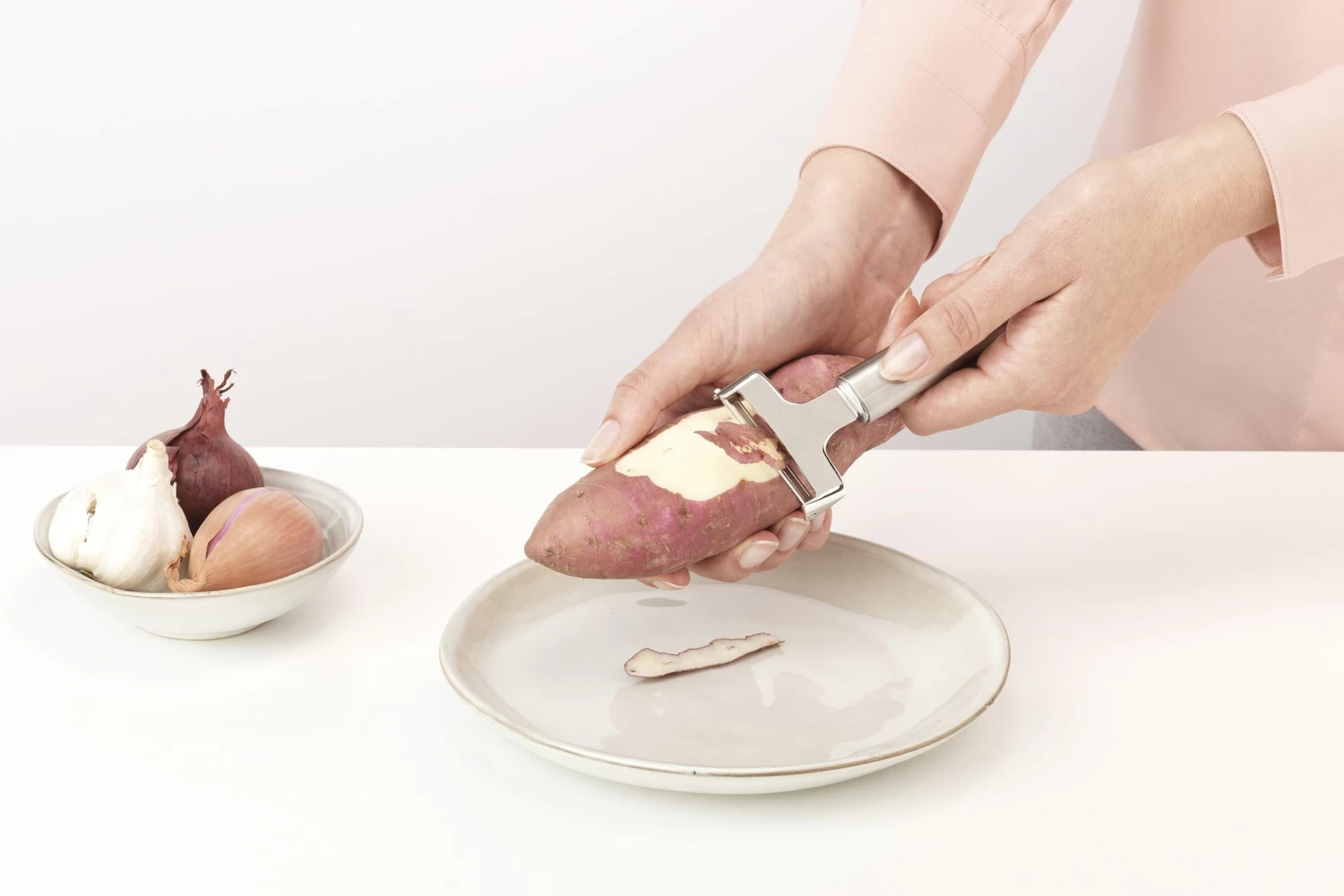 Koken wordt nog leuker met deze Y-vormige Brabantia Profile dunschiller. Schilt groenten en fruit met gemak, en lekker dun. Geschikt voor links- en rechtshandigen en gemaakt van mat roestvrij staal – schillen wordt een peulenschil!