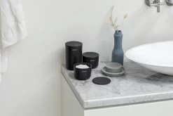 Het zijn vaak de kleine dingen die ons vrolijk maken, zoals deze drie stapelbare Brabantia ReNew Opbergpotjes – set van 3 – Dark Grey. Twee stuks voor haarspeldjes, oorbellen en al die andere kleine dingen die je graag bij elkaar houdt. De grotere pot is perfect voor wattenbolletjes of -schijfjes. Stapel op potjes.