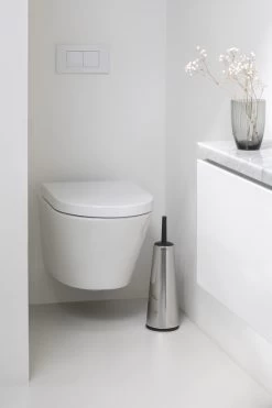 Niet dol op het poetsen van de pot? Gewapend met deze betrouwbare Brabantia ReNew WC borstel met houder is het schoonmaken van het toilet een stuk makkelijker en sneller. Schoon tot in de kleinste hoekjes. Toiletborstelbonus: de houder houdt je borstel uit het zicht, maar paraat. Discreet design. Kiekeboe!