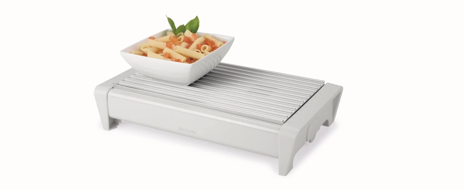 Heb je je thee of maaltijd graag lekker warm? Dan loop je zeker warm voor deze Brabantia Rechaud / Schotelverwarmer met twee kaarsjes. Hij heeft dubbelwandige waxinelichthouders, dus geen schroeiplekken op je tafel. Ook niet op je vingers, want de kunststof zijelementen hebben geïntegreerde coole handgrepen. Chapeau rechaud!
