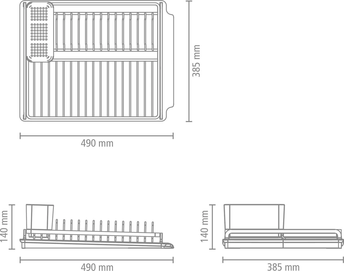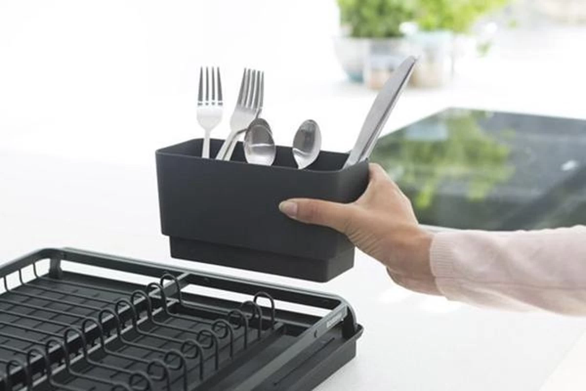 Afgeknapt op je afwas? Het Brabantia Sink Side Afdruiprek – Dark Grey geeft aandacht aan je aanrecht. Dit mooie afdruiprek biedt volop ruimte aan borden, pannen, glaswerk en bestek. De siliconen mat vangt het overtollige water op en houdt je aanrecht droog en kan ook los worden gebruikt. Met het uitneembare bestekbakje vul je in een handomdraai je besteklade.