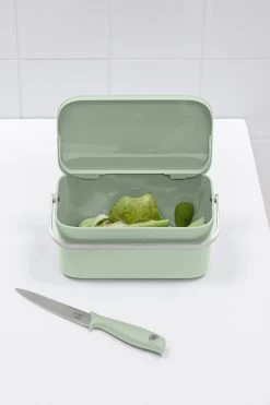 Afgeknapt op je afwas? Het Brabantia Sink Side Afvalbakje Aanrecht – 1,8 liter geeft aandacht aan je aanrecht. Dit fijne maatje is eenvoudig te openen, te verplaatsen en schoon te maken. Het deksel heeft een ‘open-stand’, waardoor je ook grotere karweitjes eenvoudig klaart en dankzij het roestvrijstalen handvat leeg je het bakje zonder gedoe in je biobak.