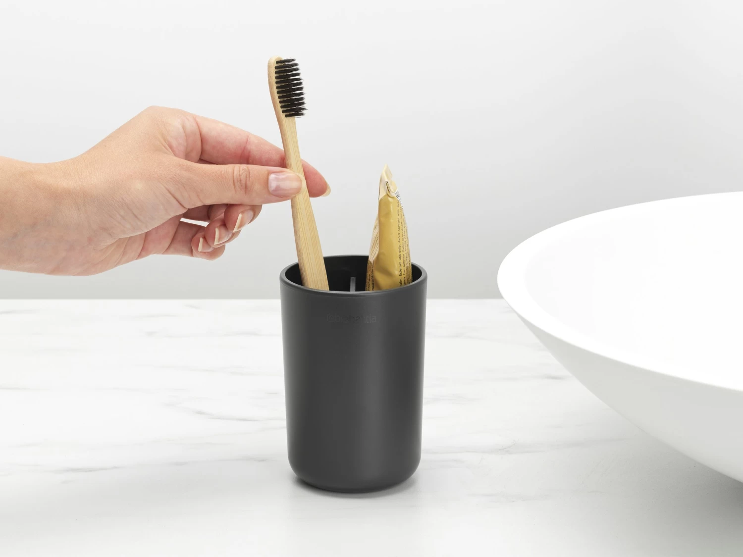 Het is niet makkelijk om een tandenborstelhouder te vinden die net zo stijlvol is als je badkamer. Maar dit is er één. Deze stevige en stabiele tandenborstelhouder houdt je tandenborstels uit elkaar, rechtop, droog en schoon. Ook ideaal voor elektrische tandenborstels. Design om blij van te worden.