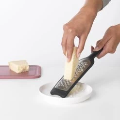 Say cheese tegen deze Brabantia Tasty+ rasp met beschermhoes. Deze rasp is ideaal voor Parmezaanse kaas, komkommer, wortel en nog veel meer. Hij maakt zelfs chocoladevlokken voor je, voor een zoet detail bij je favoriete toetje. Voorkom smelten en vlekken door de chocola en de rasp eerst een paar minuutjes in de vriezer te leggen. Raspen maar.