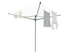 Gemakkelijk en milieuvriendelijk je was drogen doe je met deze Brabantia Topspinner Droogmolen met Grondanker – 50 m. Met de Topspinner Droogmolen kun je de was snel en gemakkelijk buiten drogen, dankzij de soepeldraaiende armen en de kwalitatieve drooglijn.