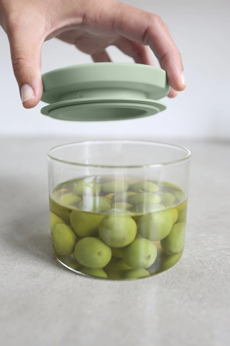 Je zou bijna stapelgek worden op deze Brabantia Set van 3 Stapelbare Glazen Voorraadpotten met Deksel in de kleuren Light Grey, Dark Grey en Jade Green. Ze hebben een inhoud van resp. 0,3 – 0,6 en 1,1 liter. Elke glazen voorraadpot heet een deksel om deze netjes af te sluiten. Je mag gerust een beetje verliefd worden op hoe mooi en handig deze stapelbare glazen voorraadbussen zijn voor het opslaan van ingredienten. Elke voorraadpot met deksel is transparant waardoor de inhoud in een oogopslag zichtbaar is.