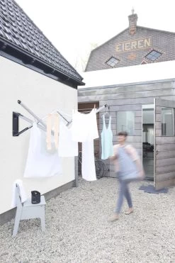 Nooit meer sjouwen of opruimen, eenmaal aan de muur bevestig met je met deze wanddroger altijd direct klaar voor gebruik. Met een soepele bediening met één hand, en 24 meter strakke drooglijn biedt voldoende ruimte voor een complete gezinswas! Met een hand klap je hem eenvoudig uit op 2 vierkante meters. Dit handige model – dat eenvoudig aan een muur bevestigd kan worden – neemt ook uitgeklapt maar heel weinig plaats in en kan heel compact ingeklapt worden. De beschermhoes houdt de wanddroger WallFix schoon en droog indien je deze niet in gebruik hebt. De hoes is gemaakt van sterk, weerbestendig materiaal en blijft goed zitten door de twee drukkers en een stevig koord.