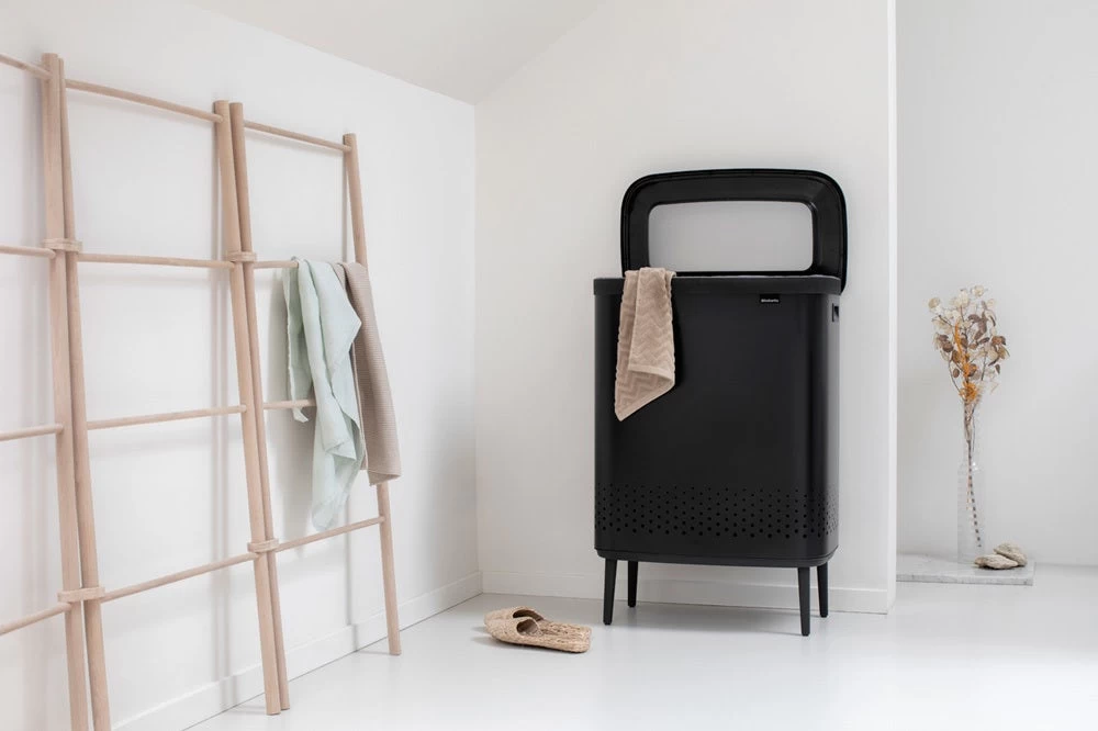 Brabantia maakt van wasdag een prachtige dag met de 2×45 liter bo wasbox Hi. De bo wasmand lijkt op een kastje, en is daardoor een super decoratiestuk in je slaap- of badkamer. Maar bo is meer dan looks alleen! De wasmand heeft de perfecte hoogte en slimme ventilatiegaten. Dankzij de Quick-Drop opening hoef je zelfs het deksel er niet af te halen om er was in te gooien en kun je flink wat wasgoed in een keer kwijt. Op wasdagen haal je het deksel eraf om de perfect passende katoenen waszak(ken) simpel te verwijderen en de was met hetzelfde gemak naar je wasmachine te brengen. Wassen met klasse!